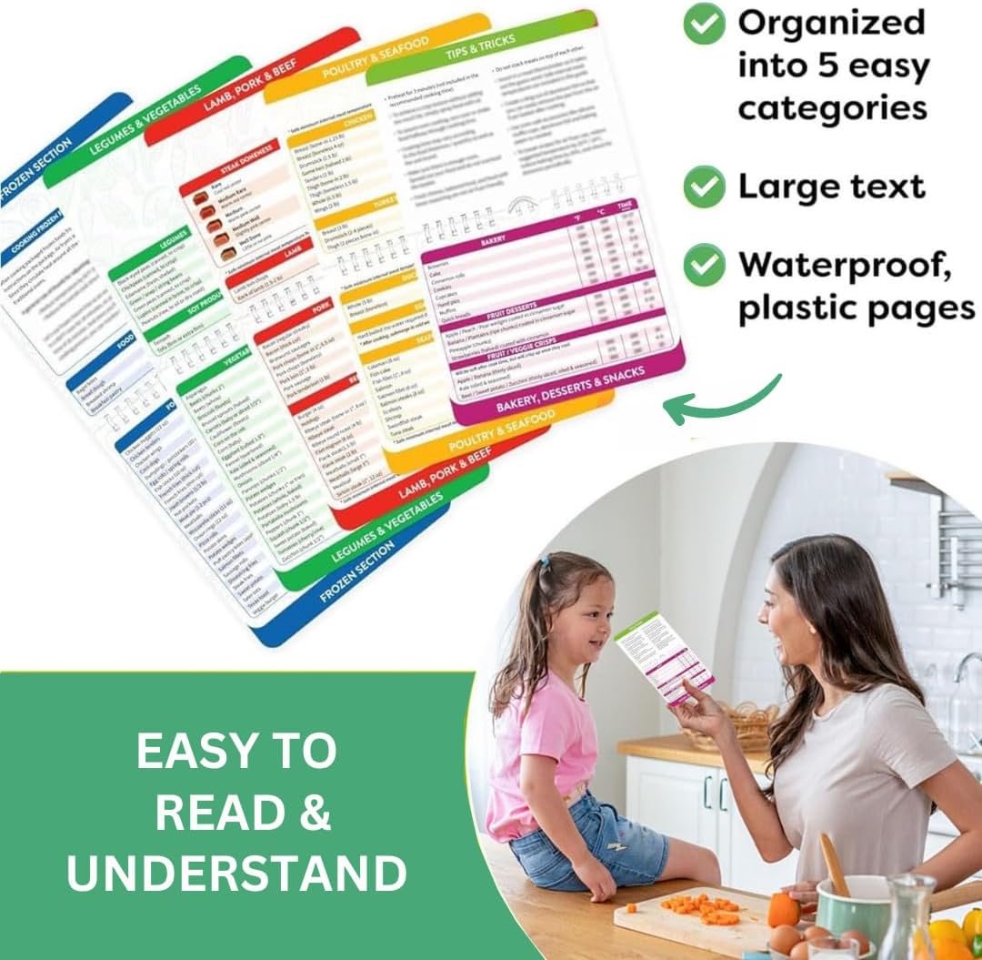 - π Easy access & Magnetic Back - air fryer cooking guide flip chart with Easy-access tabs and large fonts, enhancing the stylish layout while providing quick and easy readability.