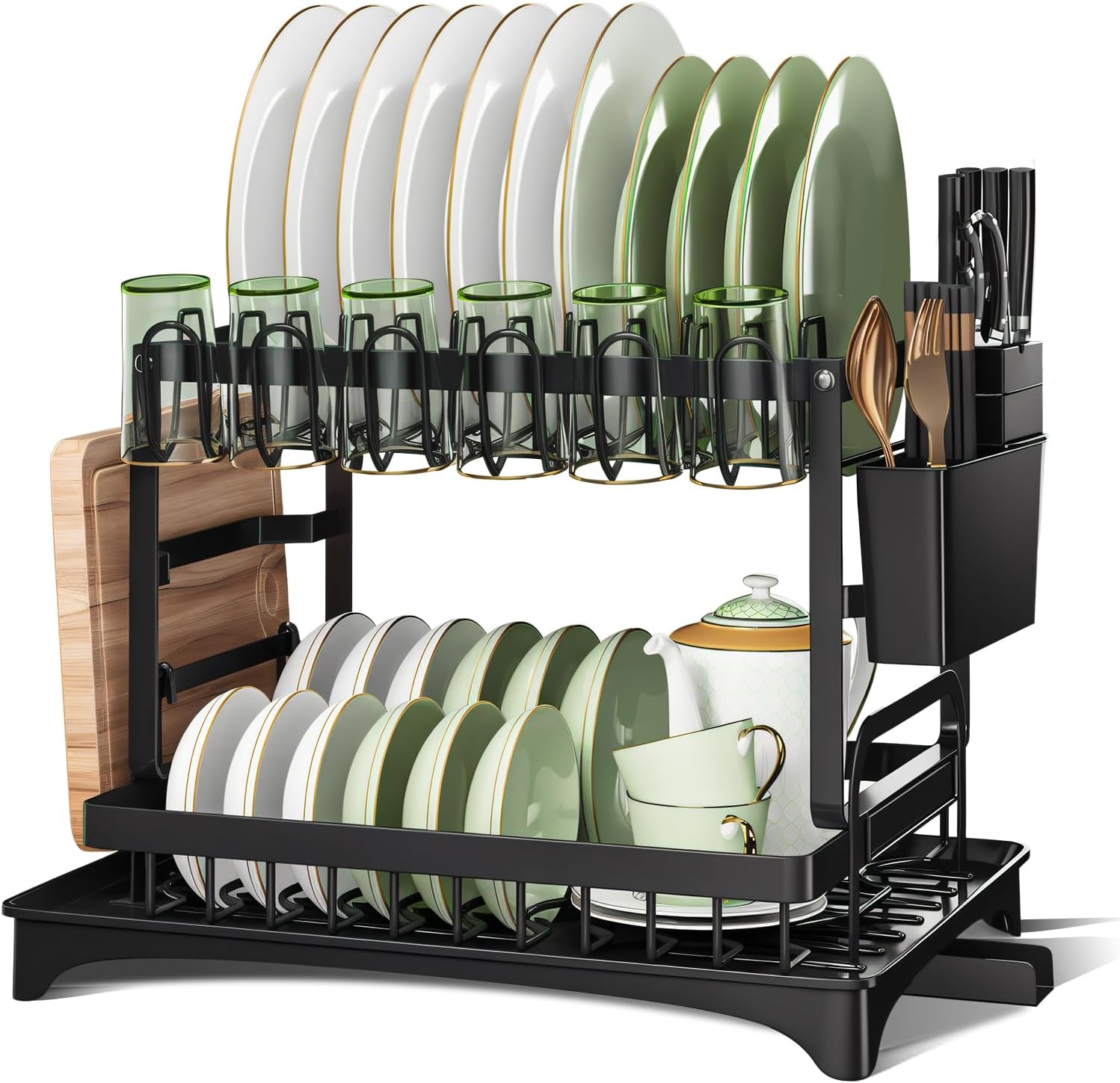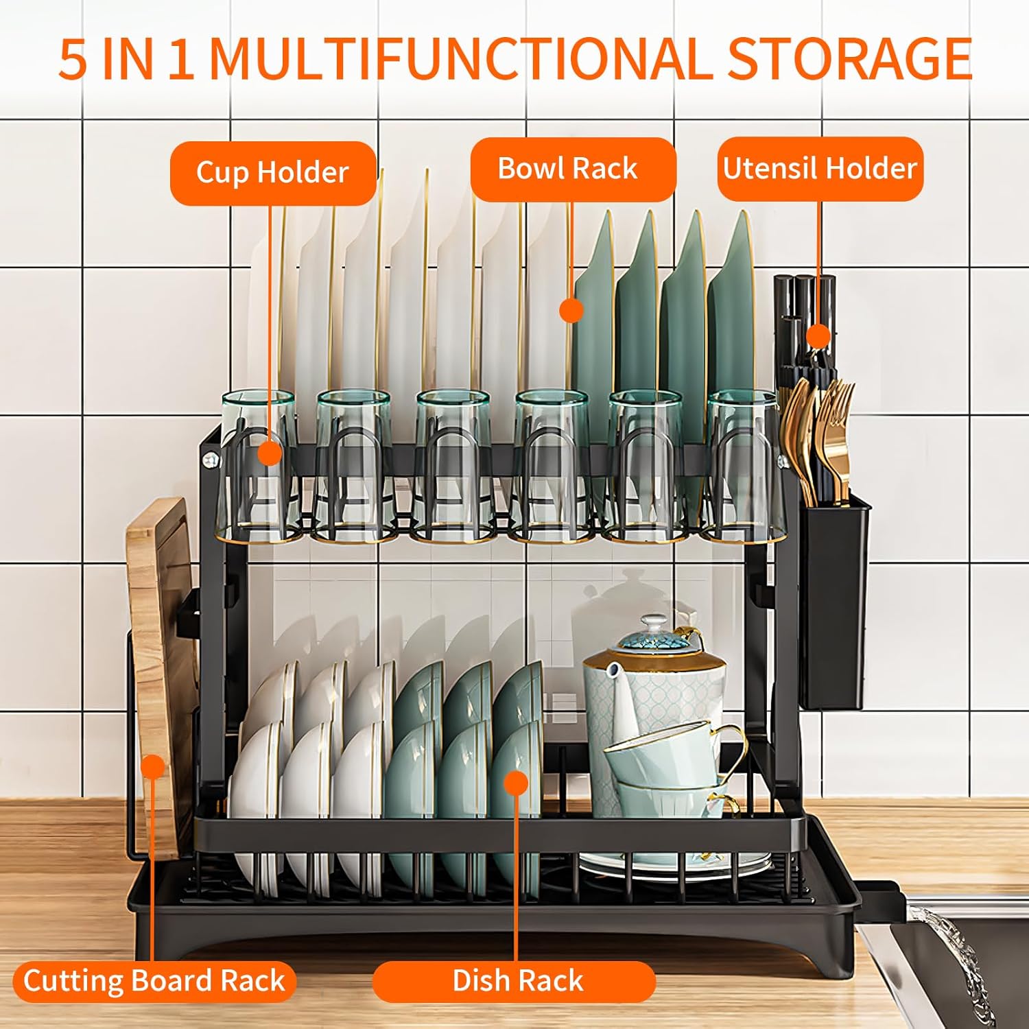 PRIMEX PRO 2 Tier Metal Dish Drainer Rack, Kitchen Sink Dish Rack with Cup Holder, Utensil Holder, Sink Drainer Rack for Kitchen Counter