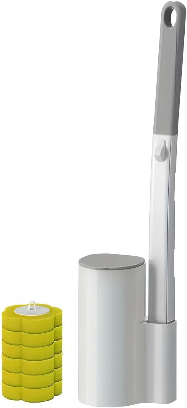 Toilet Brush Set with 6 Replacement Sponge Heads, with detergent, Disposable Wall-mounted toilet cleaning system with 6/18/32 Heads