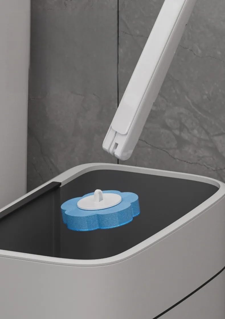 - Easy to Replace: Thanks to the switch design at the handle's end of our toilet cleaner disposable, you can effortlessly install and remove the brush head without touching it with your hands. The tight clip connection ensures the brush head stays securely in place. The storage caddy can hold the brush handle and store the refill heads.